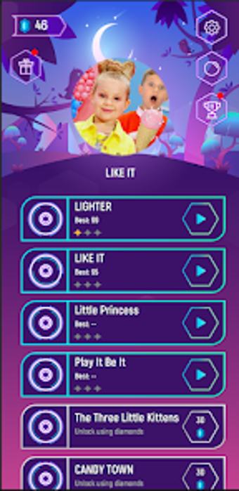 Diana和Roma Magic Tiles Hop拥有很多优秀的歌曲,包括流行曲目如"LIGHTER","LIKE IT","Play It Be It","CANDY TOWN"等等。凭借其迷人的音乐和令人上瘾的游戏玩法,这款游戏肯定能够娱乐所有年龄段的Diana和Roma粉丝。